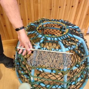 Gareth and Helen have teamed up to hold workshops to knit and or crochet small panels to cover old creels to sit on top of the Oyster Plants to allow the plants time to establish. It was great to see many of our Lunch Club visitors joining in on the day alongside Charlotte, Karlyn & Franzi.
