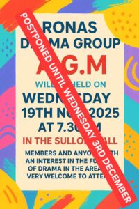 Ronas Drama Group AGMBy CharL / 11/06/2025 Ronas Drama Group AGM 12/03/2025 Sullom & Gunnister HallSullom, Shetland ZE2 9RDView LocationMap Sullom & Gunnister Hall iCal Google Calendar View full calendar