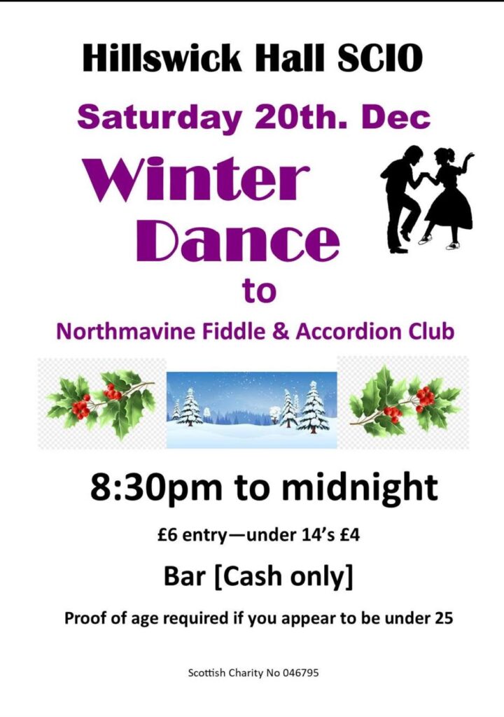 Winter DanceBy CharL / 11/20/2025 Winter Dance 8:00 pm – 9:00 pm12/20/2025 Winter Dance Hillswick Hall Keep an eye on their Facebook page for more details Hillswick HallHillswick, Shetland ZE2 9RW01806 503265View LocationMap Hillswick Hall iCal Google Calendar View full calendar